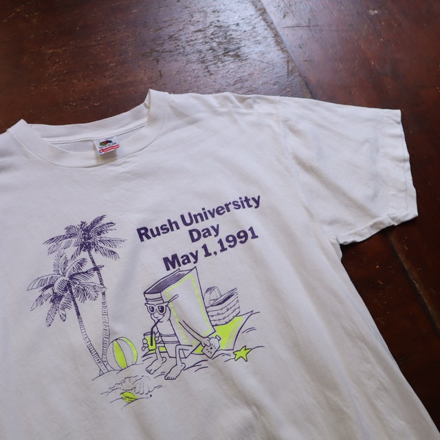 80's アート プリントtシャツ アメリカのマリーナ、グリーンリバー。 綺麗なイエローカラーとグラフィック。 ボディーはcollegiate pacific製のシングルステッチとなります。 【 サイズ 】M 肩幅 約 54cm 身幅 約 54cm 着丈 約 72cm 袖丈 約 17.5cm ※USEDの一点物商品となります。 基本洗濯した物となりますが、 ビンテージ古着特有の使用感や経年によるダメージ、汚れなどもある場合がございます。 ※ 掲載商品は店頭販売もしております。 すれ違いで売れてしまった場合、オーダーをキャンセル、返金させていただく場合がございますのでご了承ください。 ※お客様のご利用環境により、実際の商品と色味が若干異なる場合がございます。 ※お客様都合による返品交換は一切承っておりませんのでご了承ください。 以上をご理解いただいた上でのお買い求めをお願いいたします。 気になる点がございましたら、ご購入前にお問い合わせくださいませ。 よろしくお願いいたします。