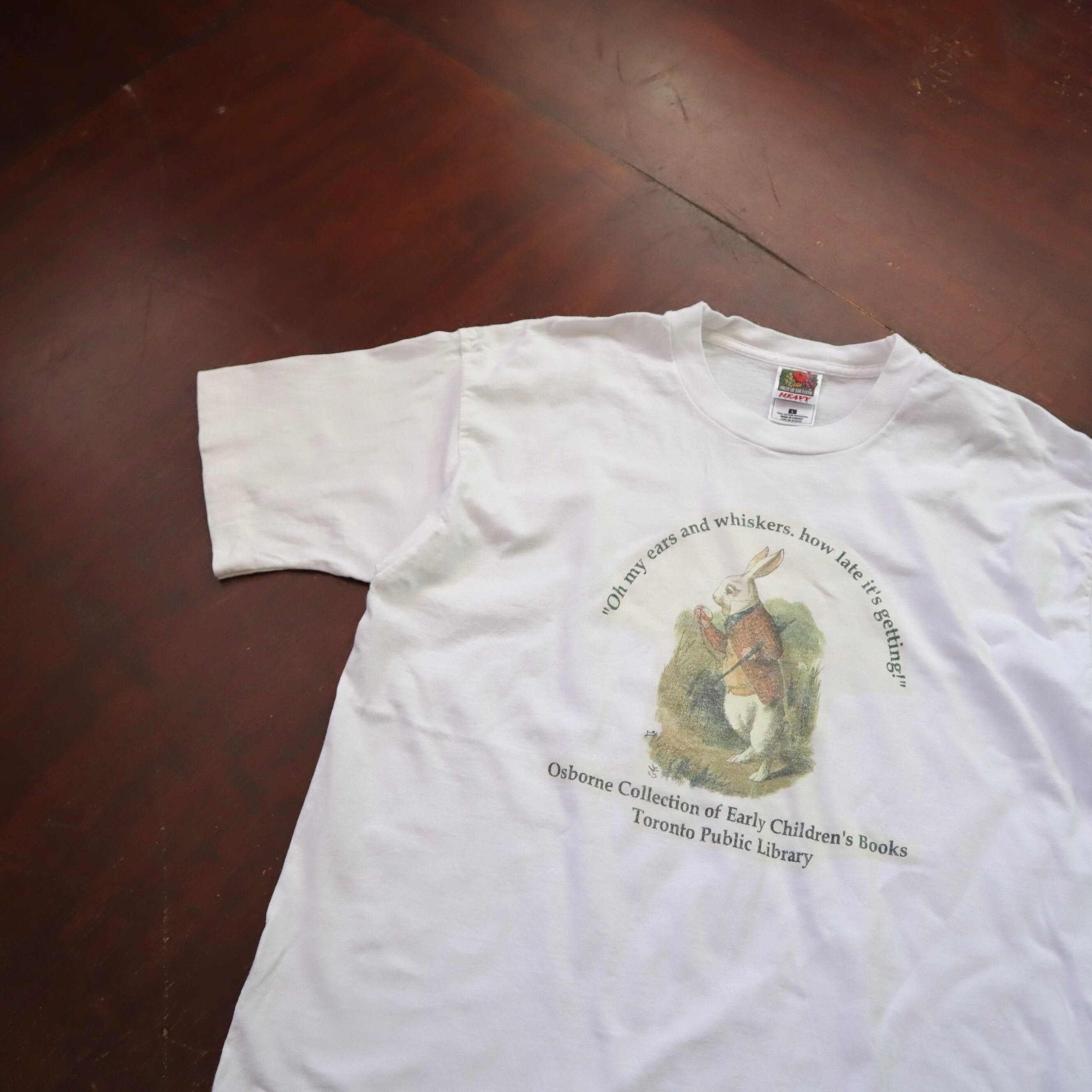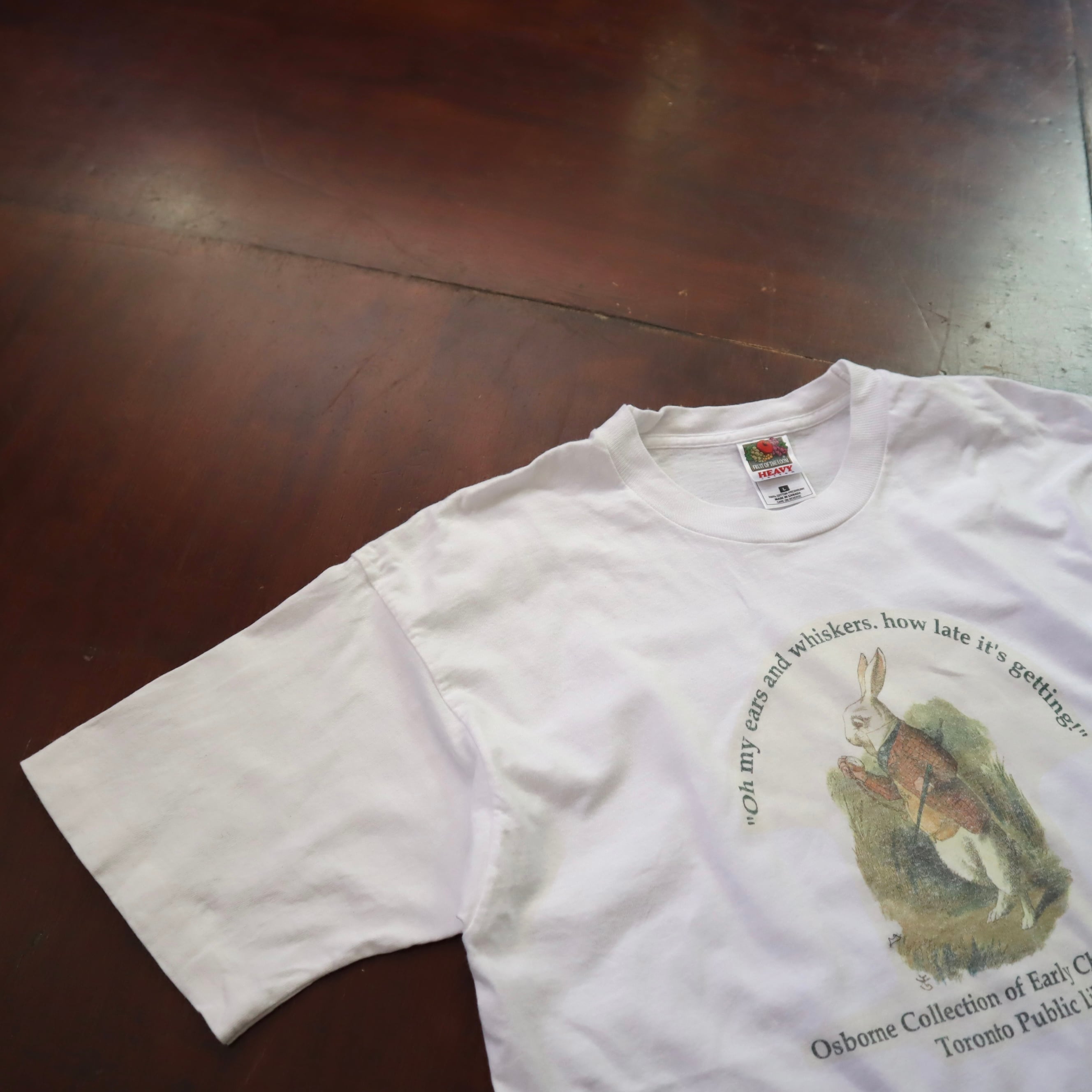 90's Print Tee 不思議の国のアリス 白ウサギ L