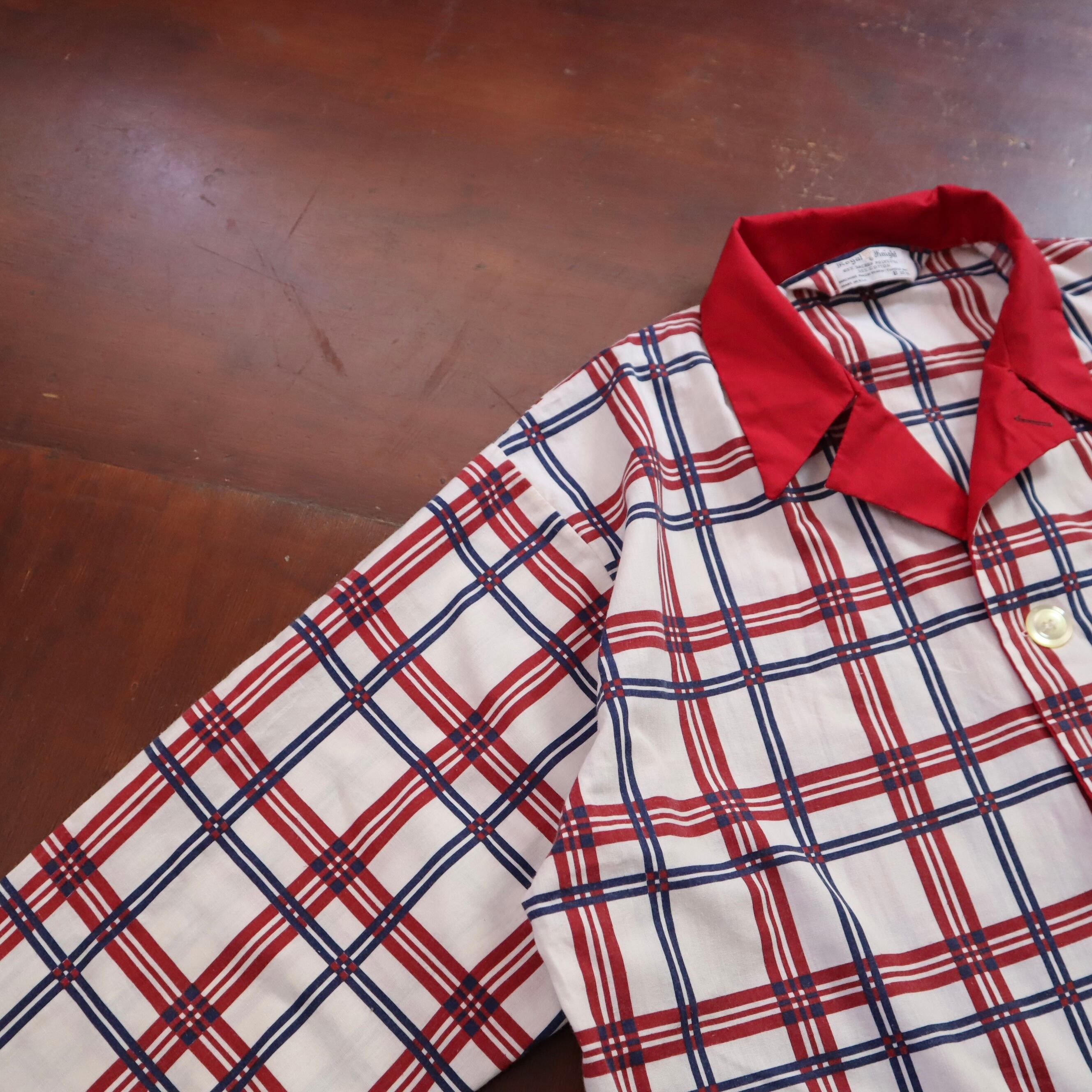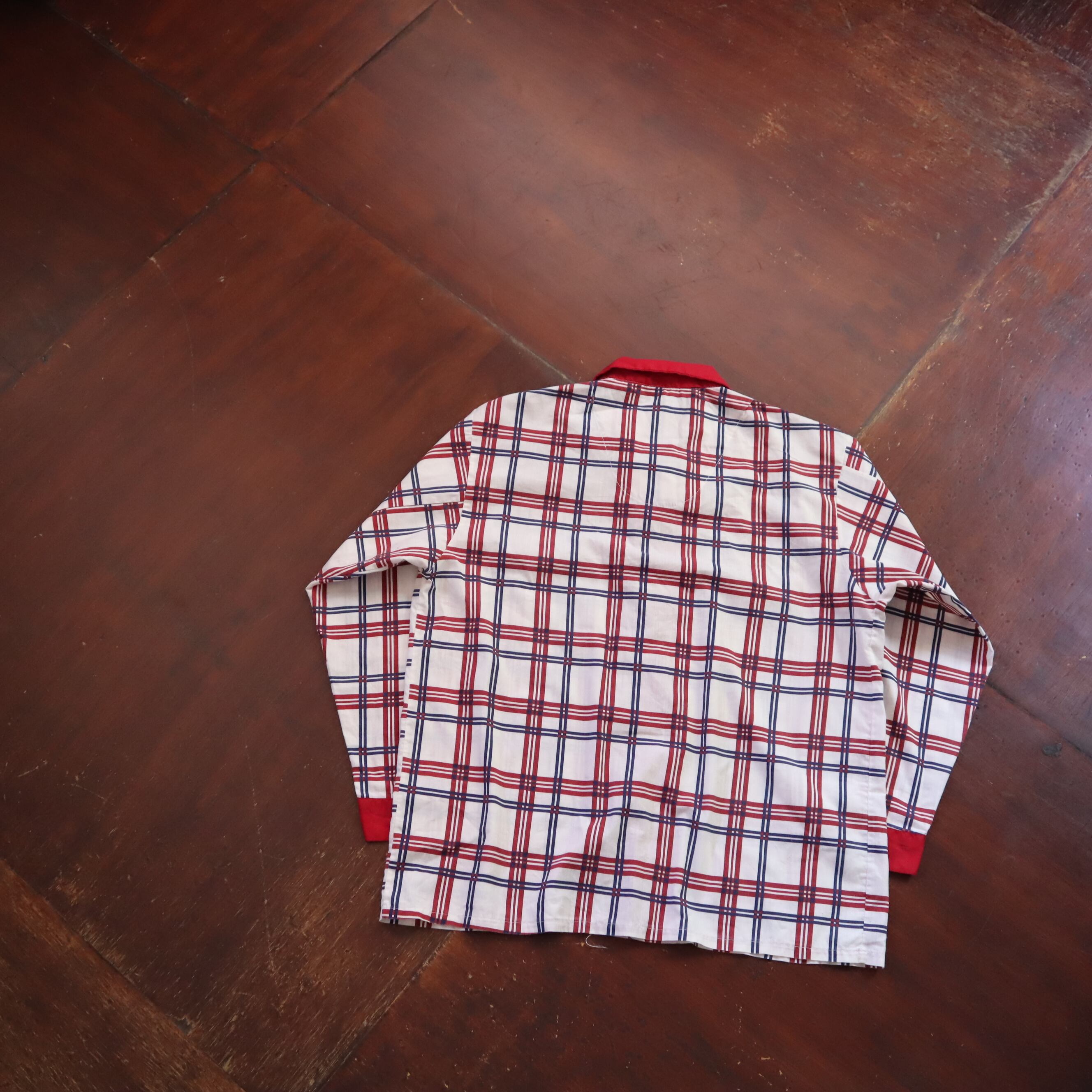 赤ベースの古めパジャマシャツ