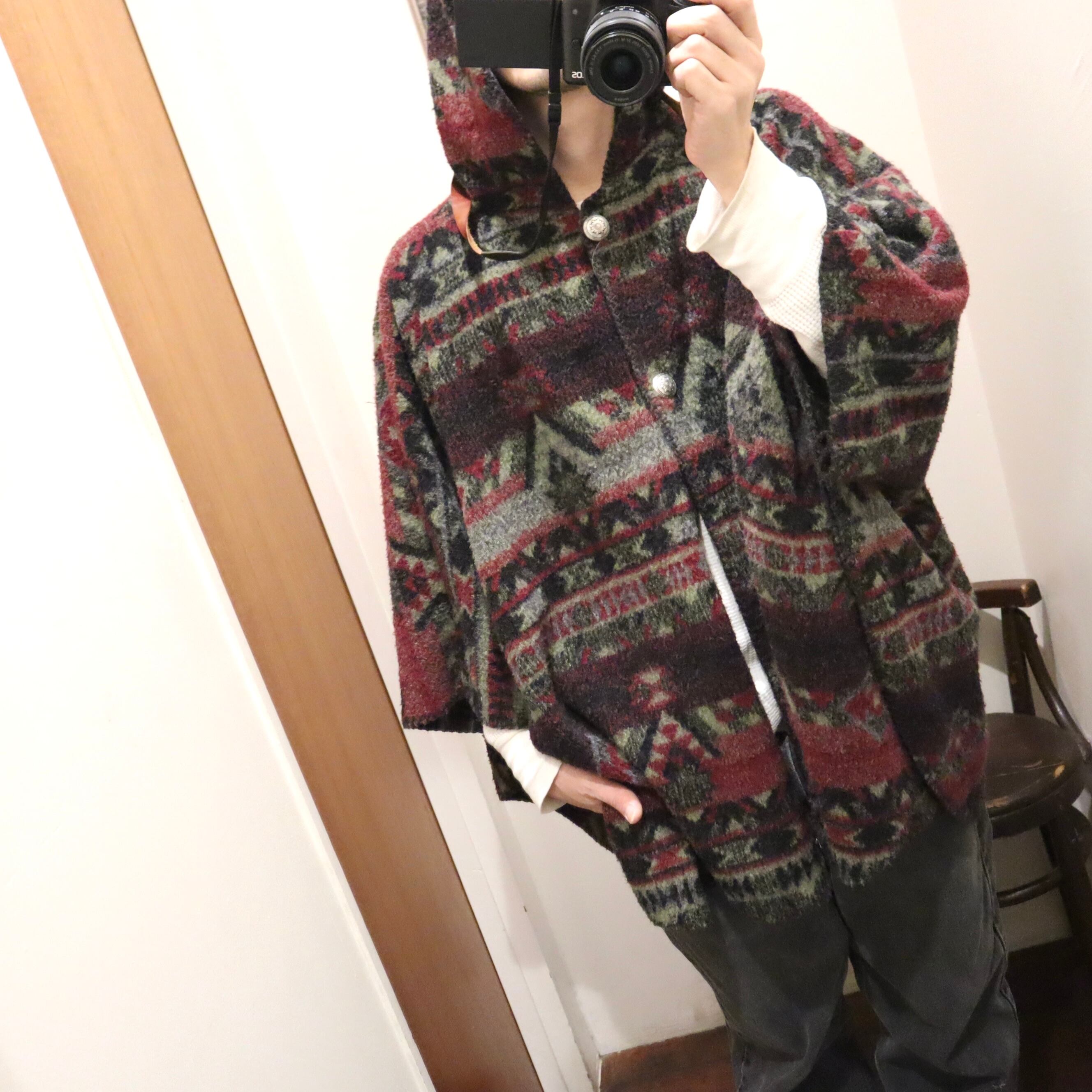 ネイティブ柄のフリースポンチョ。